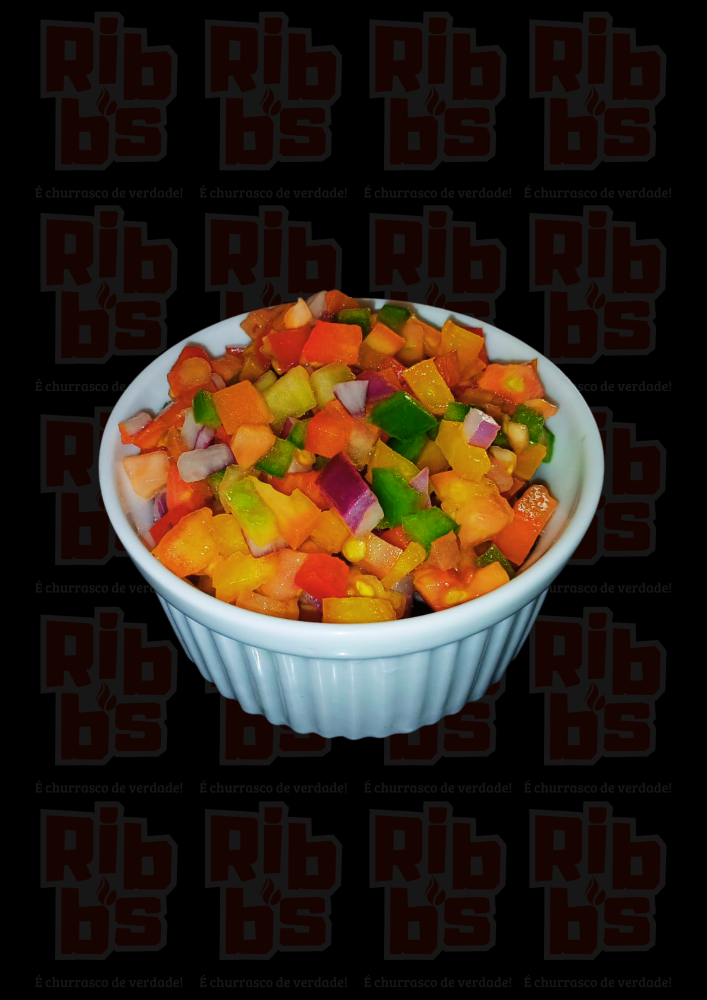 Cubinhos de tomate, pimentões, cebola roxa e suco de limão.